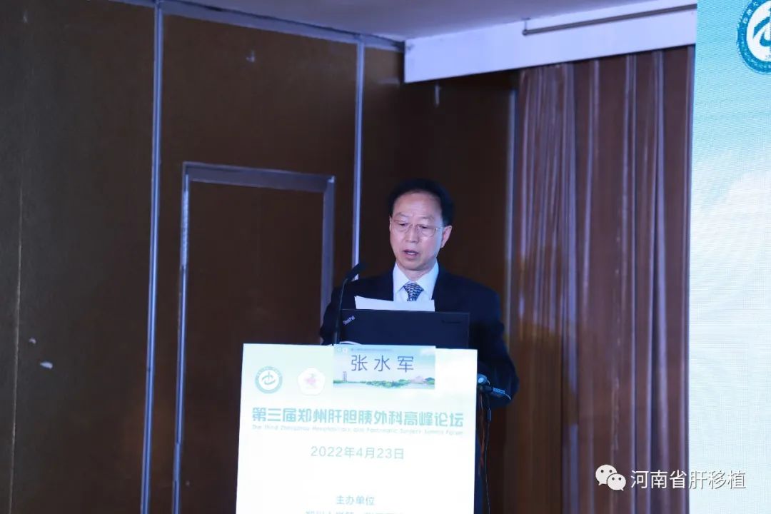中华医学会器官移植分会副主任委员、中华医学会外科学分会委员、郑州大学第一附属医院张水军教授致开幕词。张水军教授代表河南同道和郑大一附院团队向与会嘉宾表示热烈的欢迎和诚挚的感谢。他表示,肝脏是一个复杂的器官,肝病严重威胁人类健康。现如今肝病领域还面临很多困难和挑战,为了加强肝病的研究、学术交流,本次论坛将针对肝病的学术问题进行深入讨论,为大家带来新的知识、新的技术和新的理念,从而提高在肝病领域的理论和研究水平,并转化为临床治疗实践中,从而促使我们在临床治疗的水平得以快速提高,造福于肝病患者。张水军教授特别指出,鉴于疫情防控要求,本次会议是线上和线下结合的形式召开,期待疫情早日结束,下届会议各位专家能够亲临郑州,进行面对面的指导、交流。最后,张水军教授预祝此次大会圆满成功。