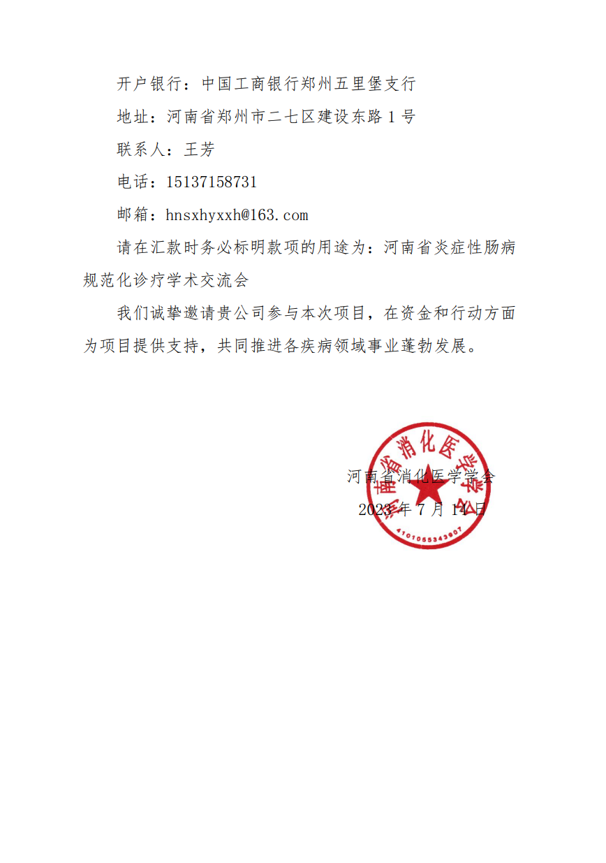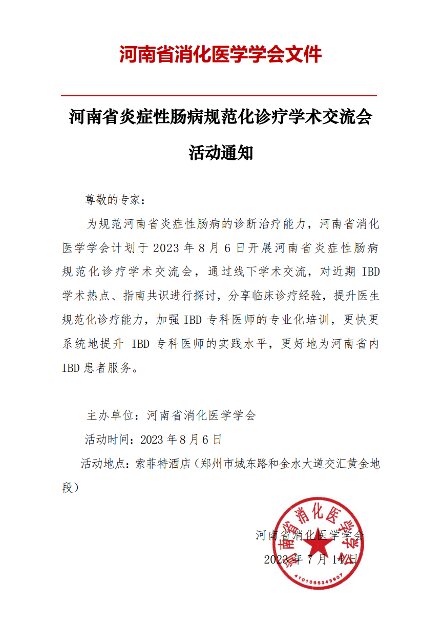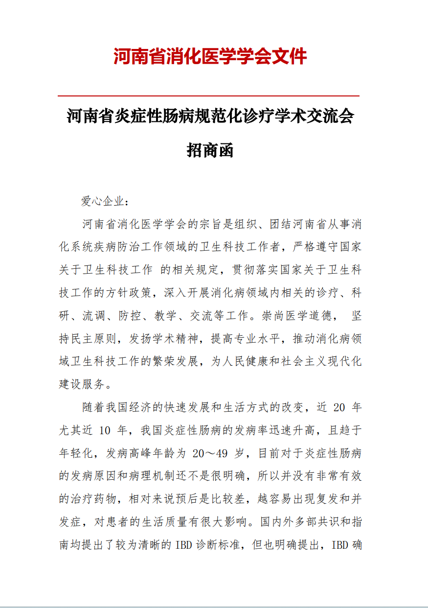 河南省炎症性肠病规范化诊疗学术交流会招商函