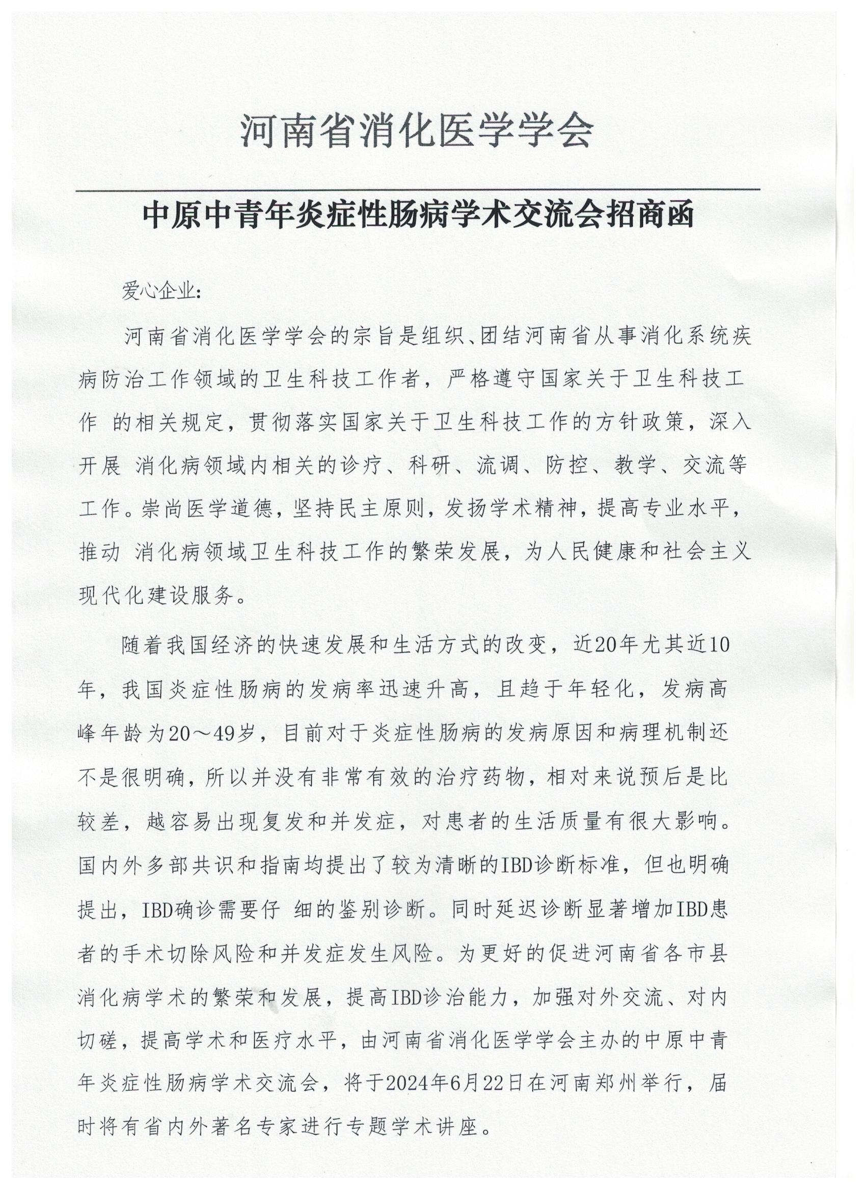 - 同心护肠,智解IBD-多学科联合诊疗学术 交流会”——招商函