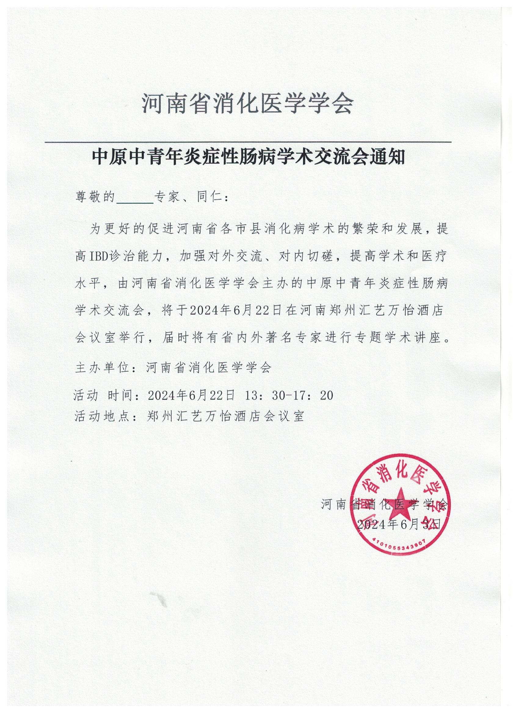 中原中青年炎症性肠病学术交流会通知