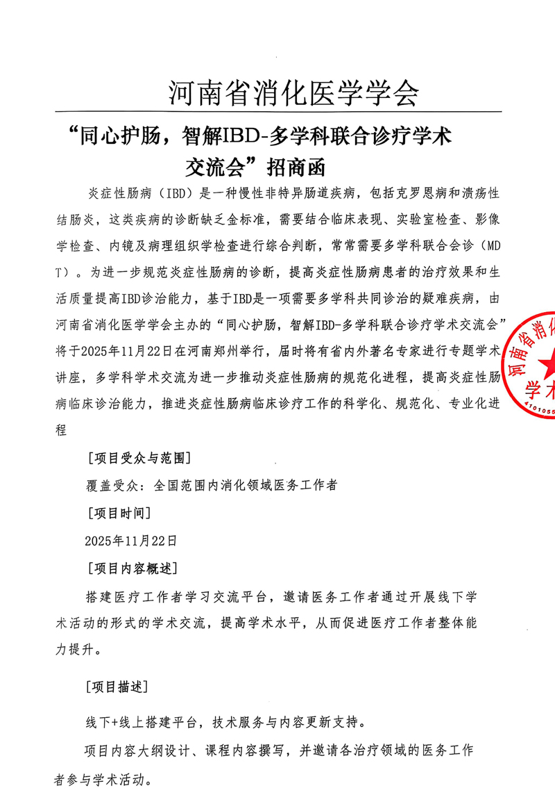 同心护肠,智解IBD-多学科联合诊疗学术 交流会”——招商函