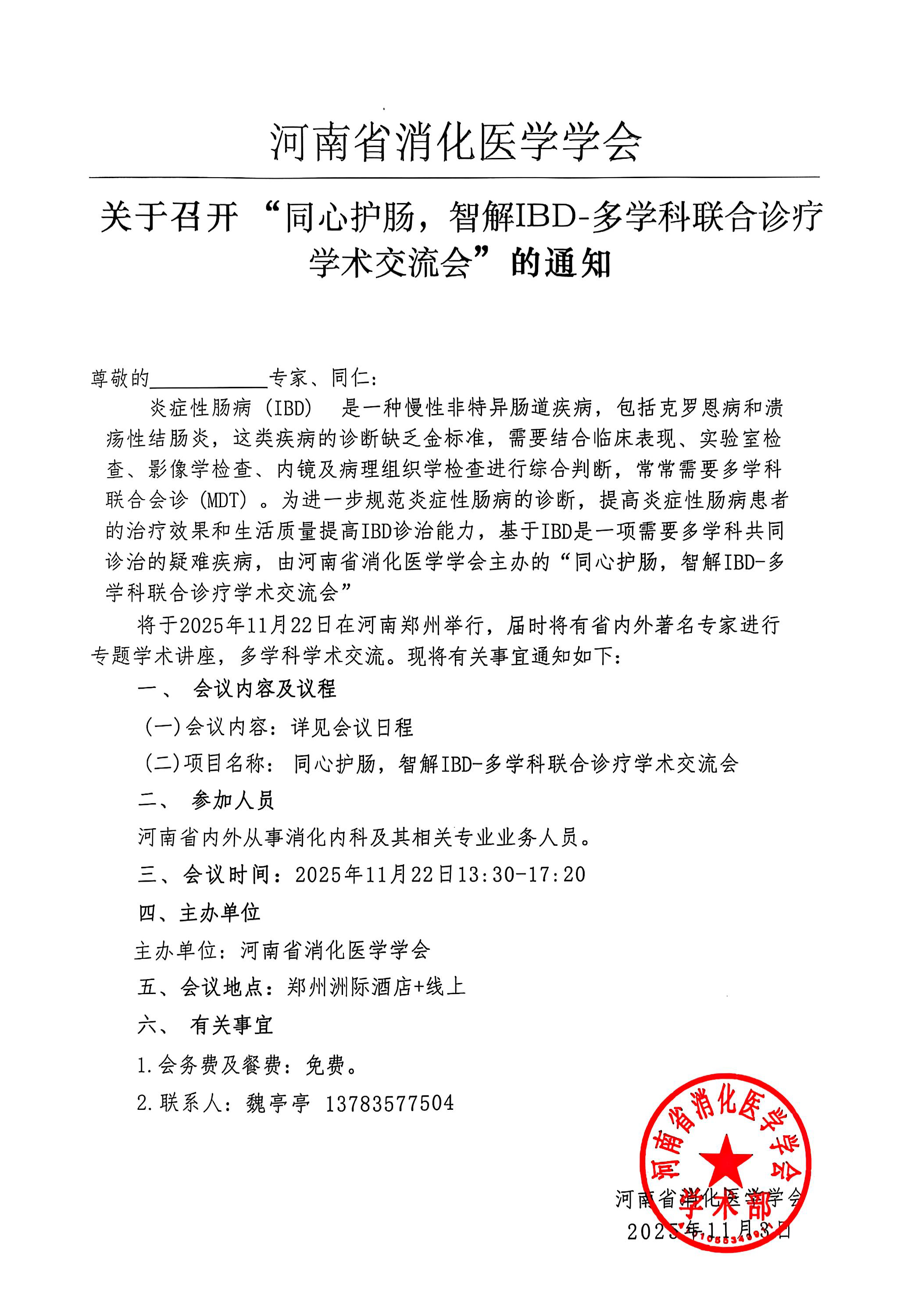 关于召开“同心护肠,智解IBD-多学科联合诊疗 学术交流会”的通知